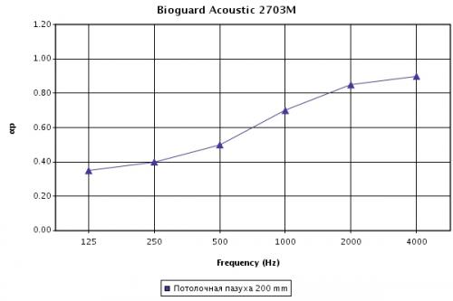 Рис.3 Коэффициент звукопоглощения (aP) для потолка Bioguard Acoustic (артикул 2703M)