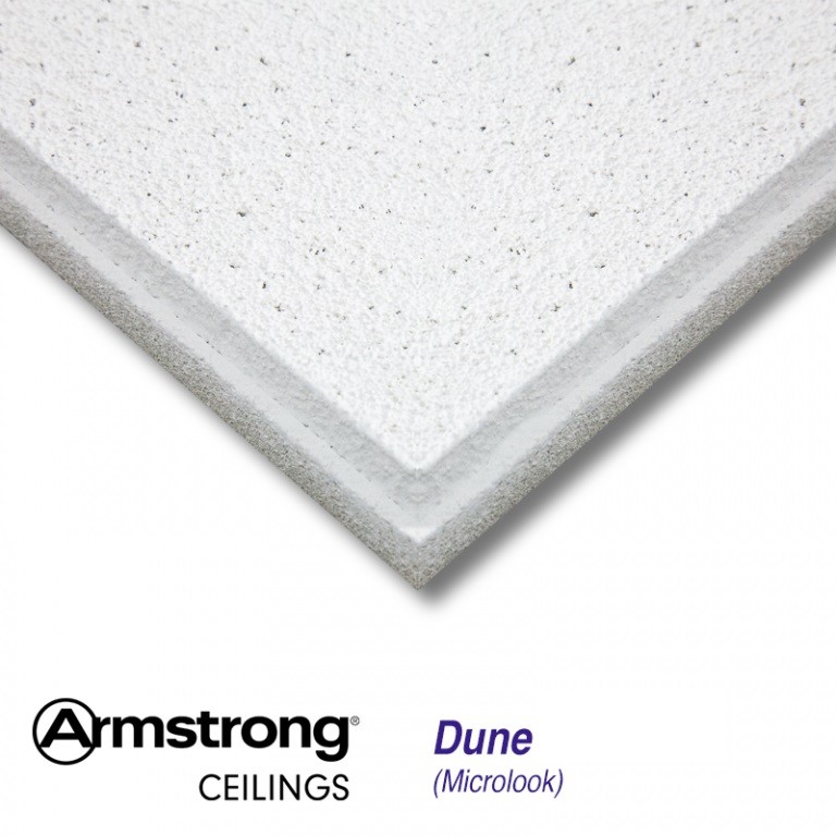 Потолочная панель Армстронг Дюна Суприм 600х600х15 с кромкой microlook (выступ-четверть) под узкую систему Т-15. Поверхность - шероховатая (песчаная) с микроперфорацией.