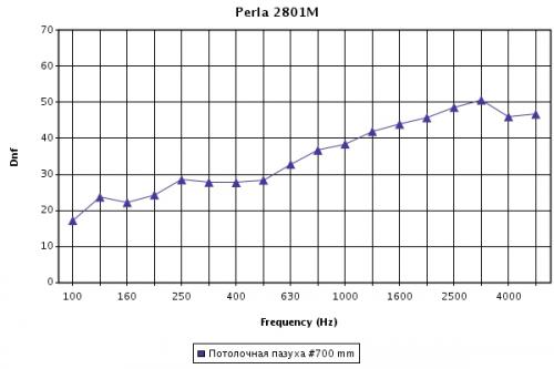 Рис.1 Звукоизоляция панелей Perla 2801 с прямой кромкой при высоте подвеса 700 мм